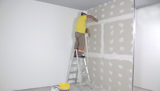 Falso techo junta tomada de placas de yeso.